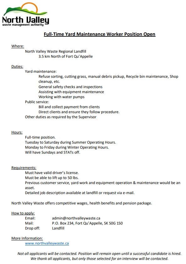 Job Posting – Full Time Yard Maintenance